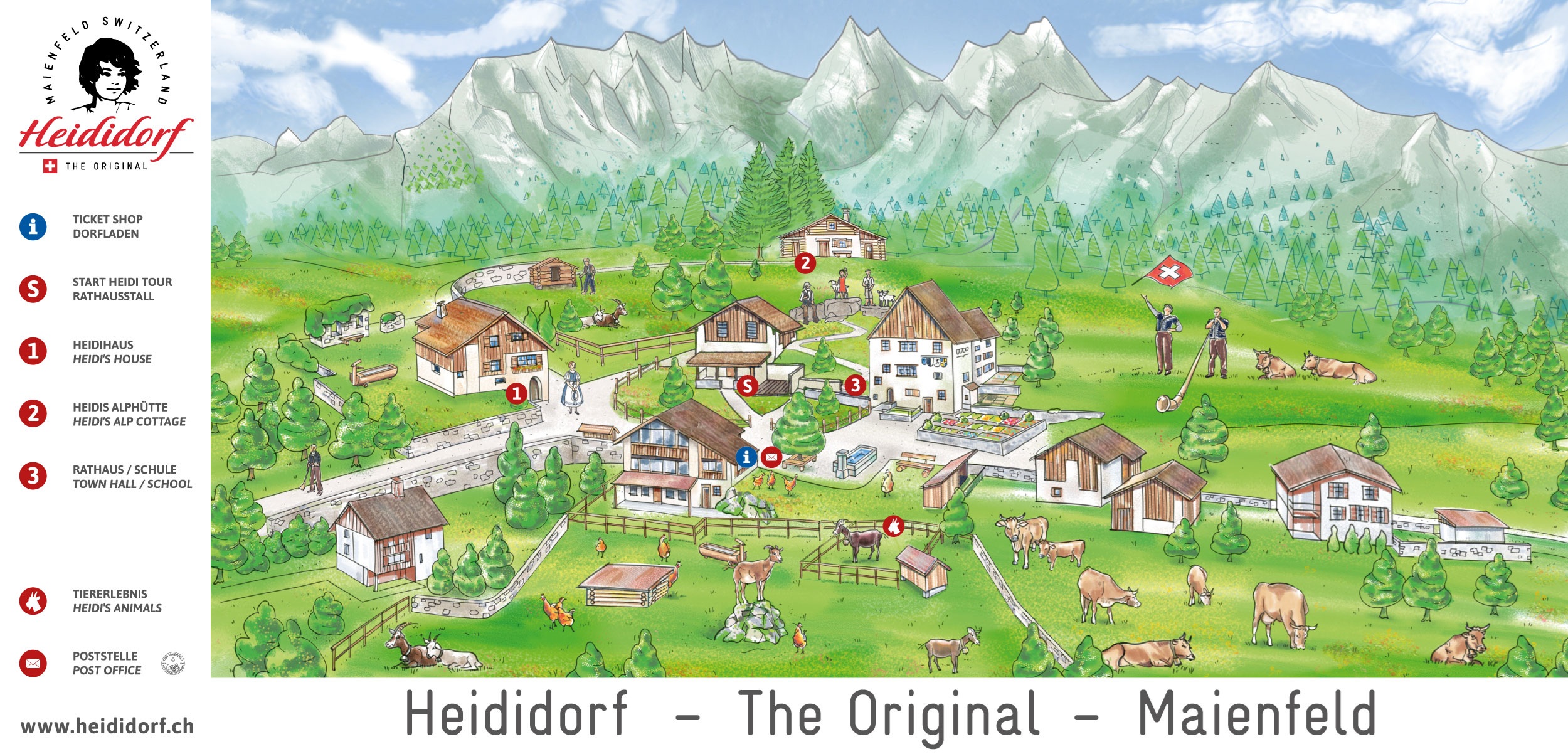 Seien Sie gespannt wo Heidi zu Hause ist. Entdecken Sie das Heidihaus, in welchem Heidi und Alpöhi im Winter leben. Spazieren Sie gemütlich zur Alphütte, in welcher Heidi bei Alpöhi ein liebevolles zu Hause fand und anschliessend besuchen Sie Heidi und Peter in der Dorfschule.
